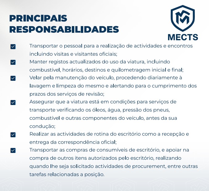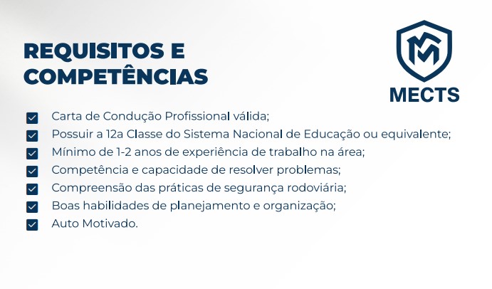 📌 Caso reúna as exigências da vaga, envie a sua candidatura (CV, Cópia de Certificado de Habilitações e Carta de Condução) para [email protected], até o dia 30 de de Janeiro de 2026.